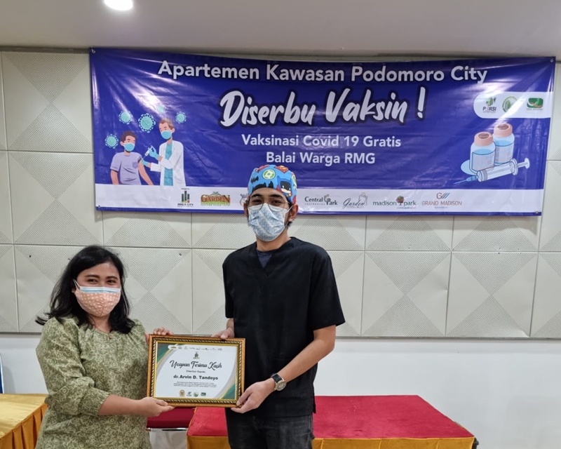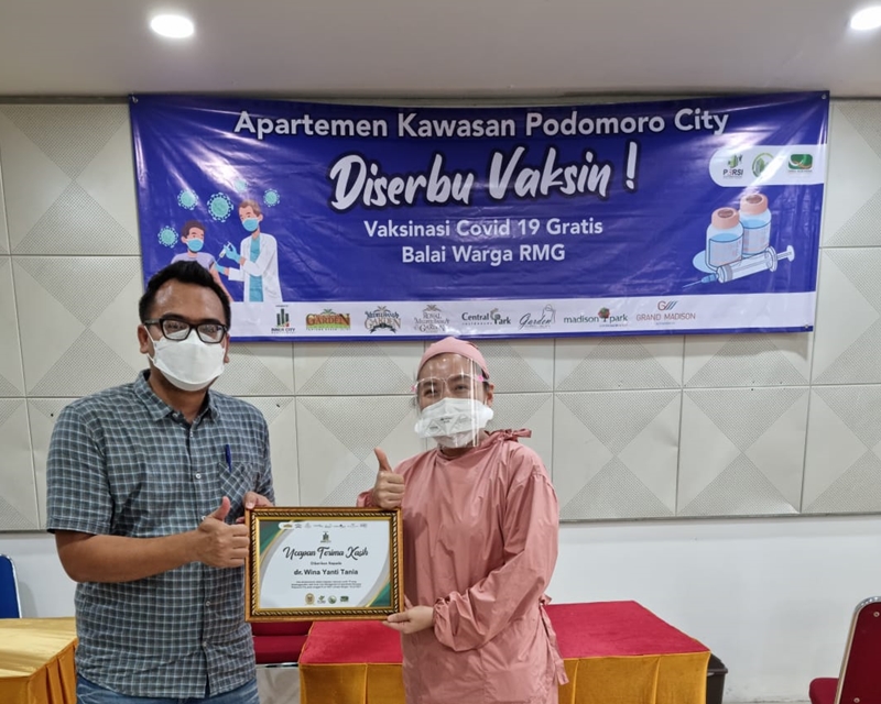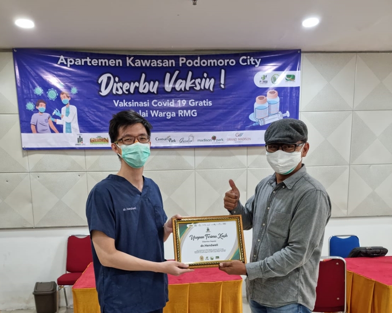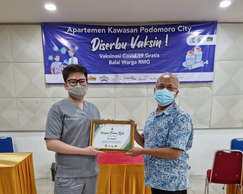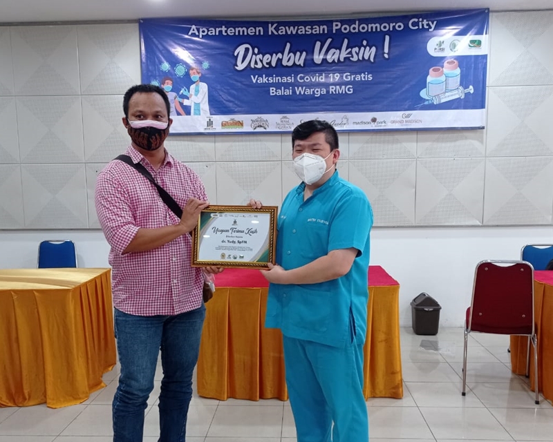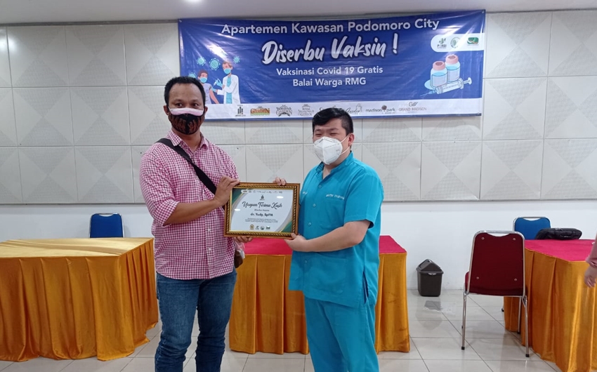 Kegiatan Vaksinasi Covid 19 Gratis dilakukan oleh P3SRS Bersama Badan Pengelola Apartemen Kawasan Podomoro City.